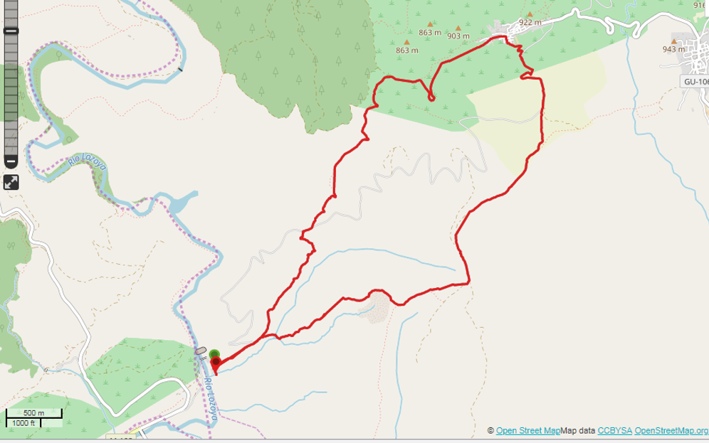 Salimos del pueblo (se puede tomar de referencia la parroquia de la Inmaculada Concepción), y tomamos un camino ganadero que desciende tranquilamente por el valle (otra opción es tomar el sendero marcado con GR blanco y rojo que sale a la derecha de la iglesia, ambos caminos se unen más adelante). Posteriormente se debe continuar por un camino que sale a la izquierda; no está bien señalizado, por lo que hay que estar atent@s. En caso de pasarlo, se llega a un puente y habrá que retroceder para volver a buscarlo. El camino discurre por la ladera del valle, y permite disfrutar de la fauna de la zona (vimos buitres y los restos de un corzo).