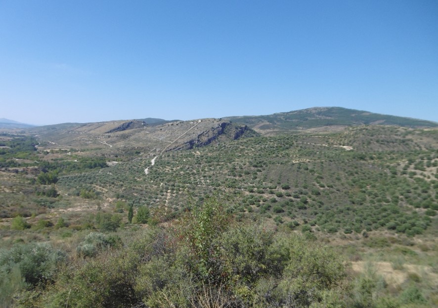 Más adelante el camino asciende hasta llegar a una carretera, la cruzamos para continuar por un camino de tierra que discurre por un valle. En este tramo podremos visualizar las Cárcavas a lo lejos, y llegaremos a la primera bifurcación de la ruta: hemos cerrado el círculo. Finalizamos la marcha por el camino ya conocido entre olivos y de vuelta hasta el parking junto a las casas del Pontón de la Oliva.